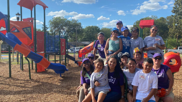 In 2022, the City of Uvalde and KABOOM! partnered on a playground project at DeLeon Park to support community healing and provide a sense of hope for the Uvalde community following the tragedy at Robb Elementary School. The creation of the new playground, which is located just blocks from the school, was a community-led process that elevated the voices of children in the community, who shared creative ideas for their dream playground at a series of design events. The project and its groundswell of support from other city agencies and local organizations show what is possible when partners and communities come together to address the needs of kids, especially in times of tragedy. The DeLeon playground project was the beginning of along-term partnership with the City of Uvalde to build more playspaces to ensure every kid has a joyful place to play.